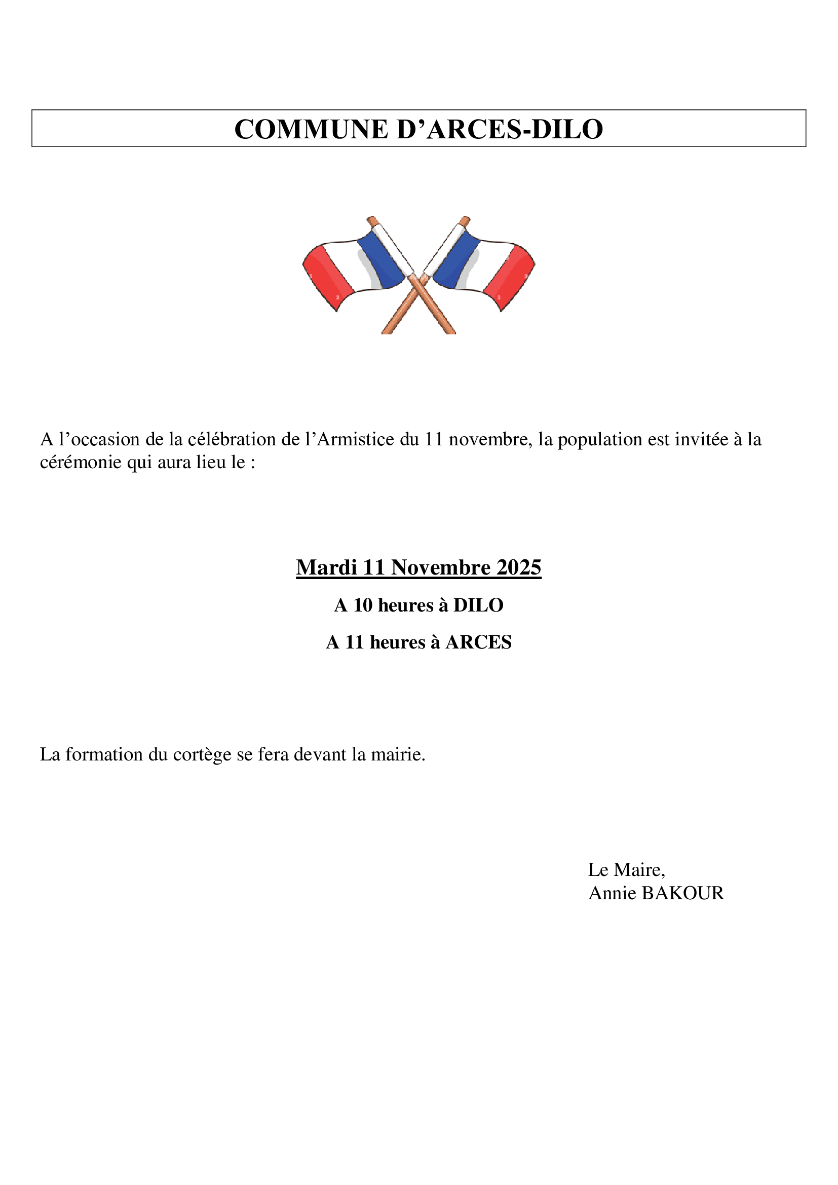 • L’enquête publique portant sur le projet de zonage de l’assainissement des eaux pluviales de la commune de ARCES-DILO aura lieu pendant 16 jours du lundi 15/09 9h au mardi 30 septembre 17h 8 septembre 2025