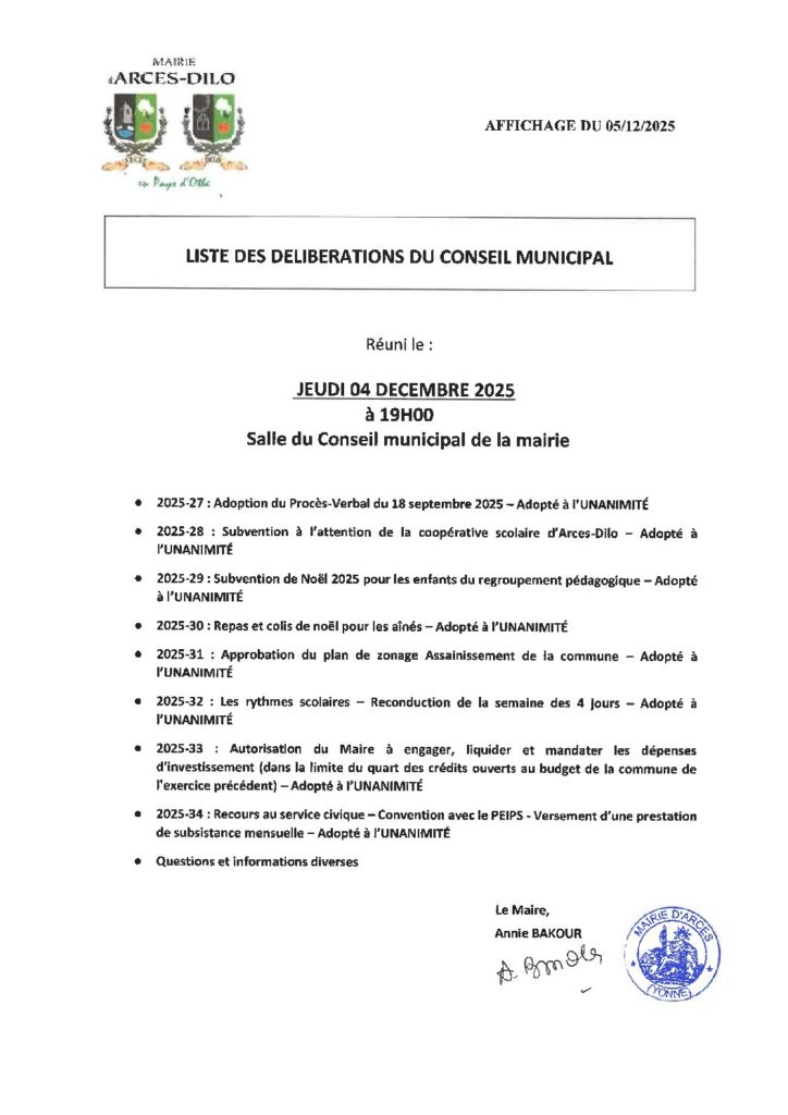 Publié le 28 novembre 2025Ordre du jour du Conseil Municipal du 04.12.2025 Ordre du jour CM 04 12 2025Télécharger